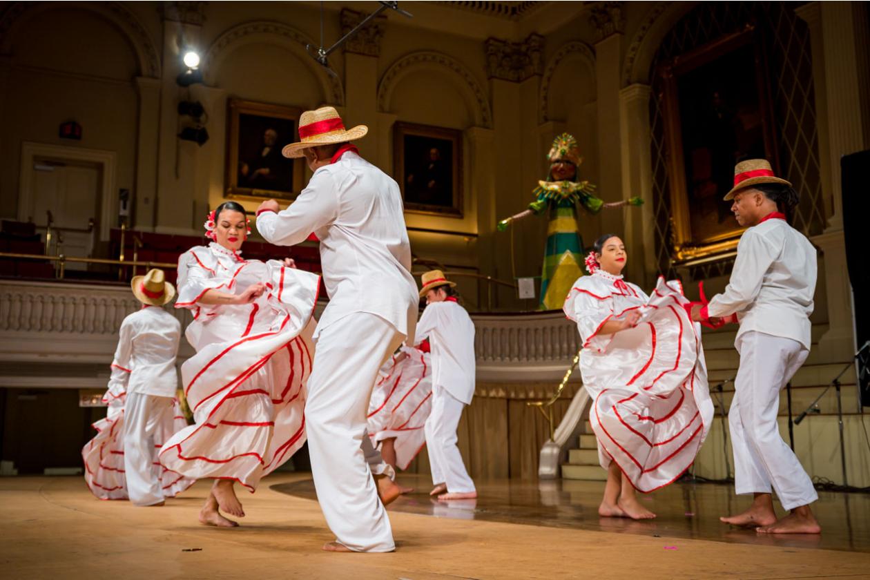 Move to the music of Son del Sol and Jack Bastante with the Afro-Peruvian music Festejo. Jump to the beat of some African drumming with Crocodile River Music. Join the all-star group Querencia Dance Company with their high energy and synchronized salsa dance. Be amazed by the intensity of Samba Viva with the Afro-Brazilian dance Maculelé, Move your body to the tune of the always energetic Tribe Rise with Haitian and Colombian rhythms, followed by the sound and cadence of some Afro-Dominican dances interpreted by Ritmos Dance Studio, and end the evening with the pageantry and exhilaration of Guardians of Traditions’ masqueraders.