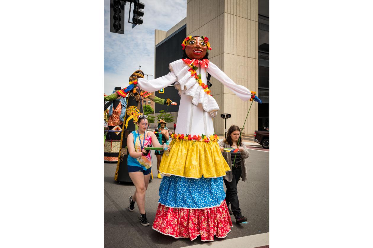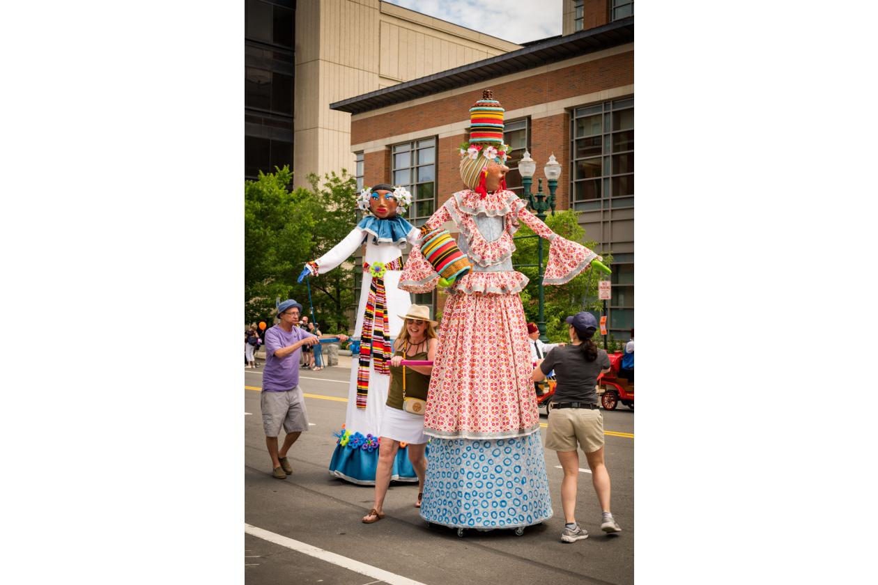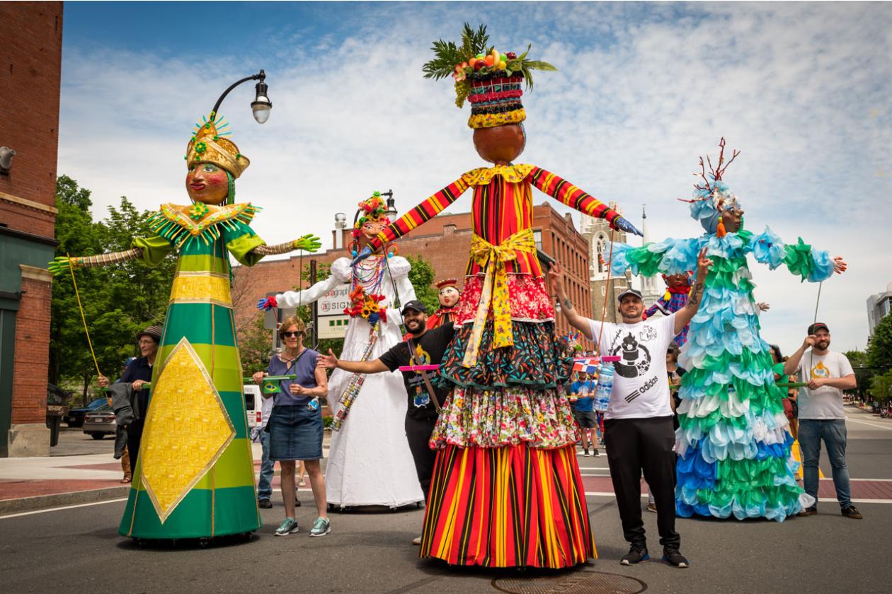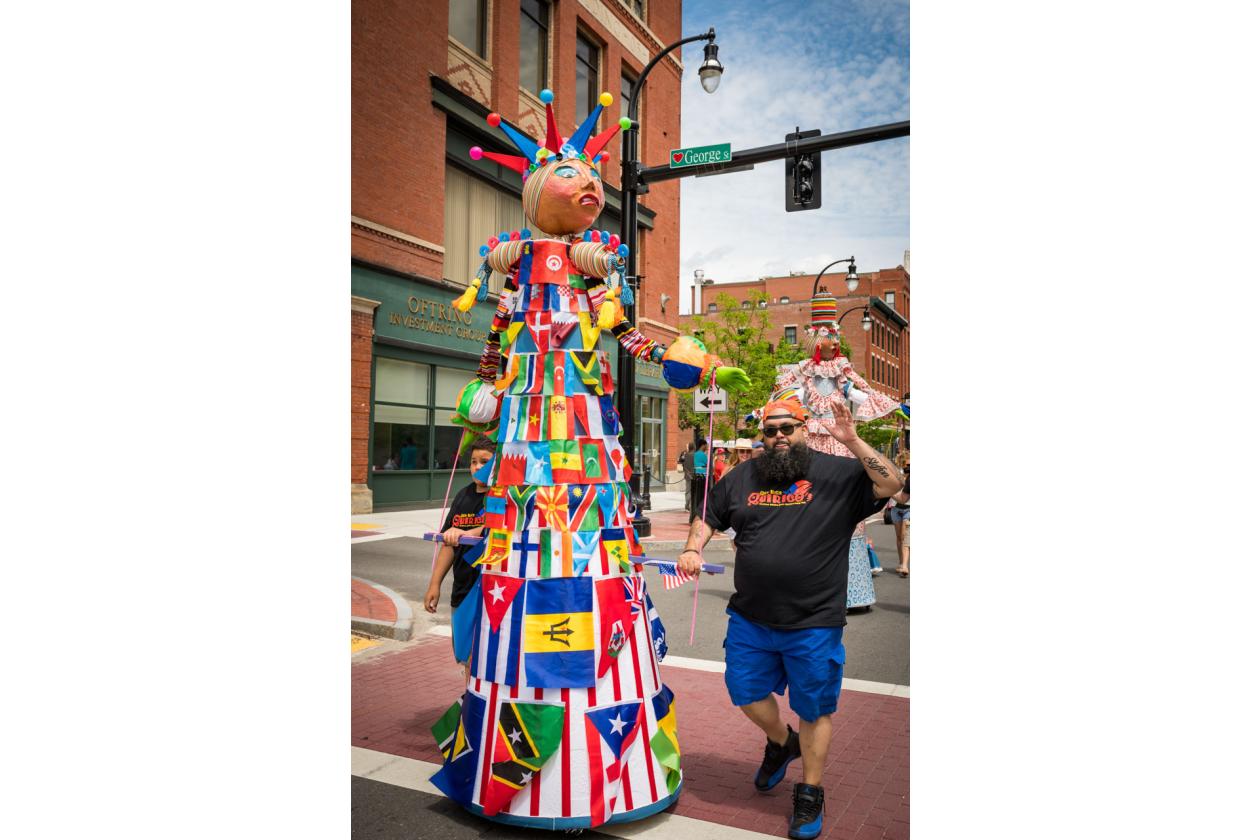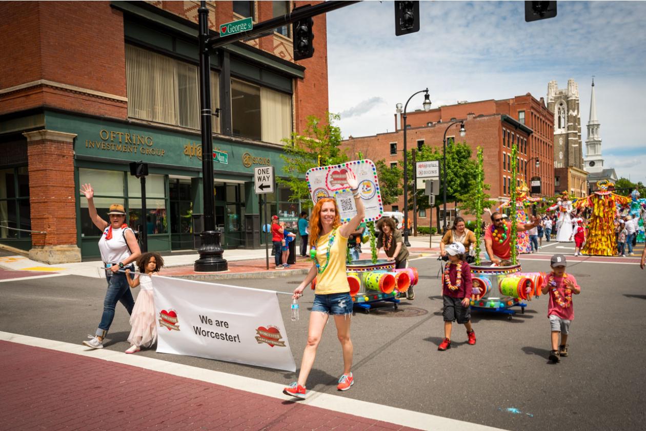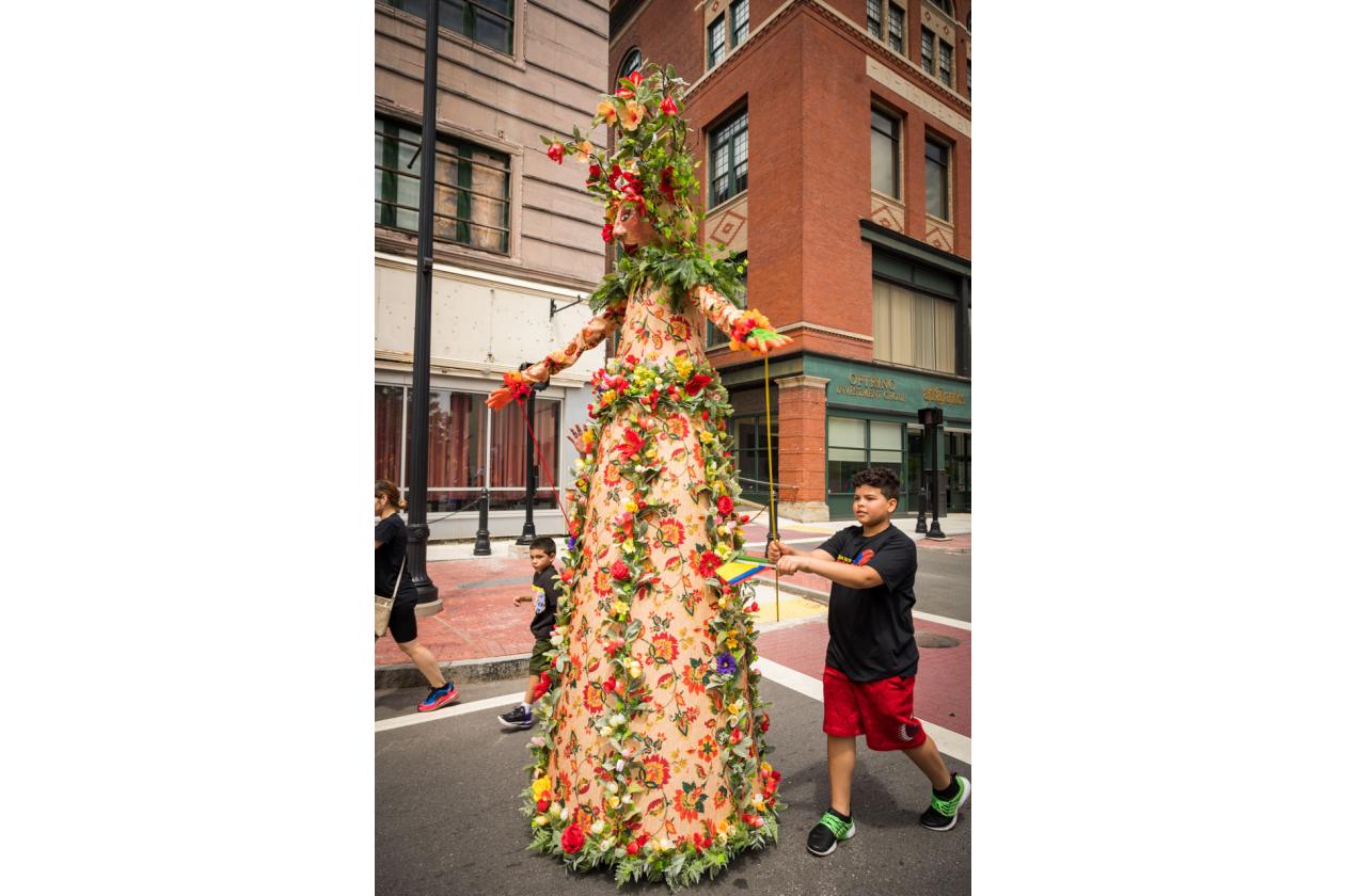 “We Are Worcester” is a community project that was created for the celebration of Worcester’s 300th birthday, to be part of the Worcester Tercentennial parade. For two months, several organizations, artists and community members collaborated to make one of the largest-scale sculptures the city of Worcester has ever had. In partnership with Guardians of Traditions and Creative Hub Worcester, and Dominican artist Luis Rivas, the community came together to design and execute eighteen large-scale, three-dimensional sculpture dolls that represent the diversity in Worcester.