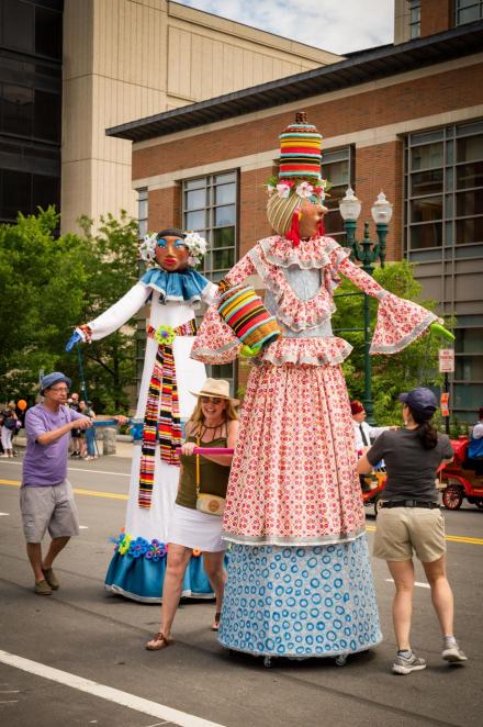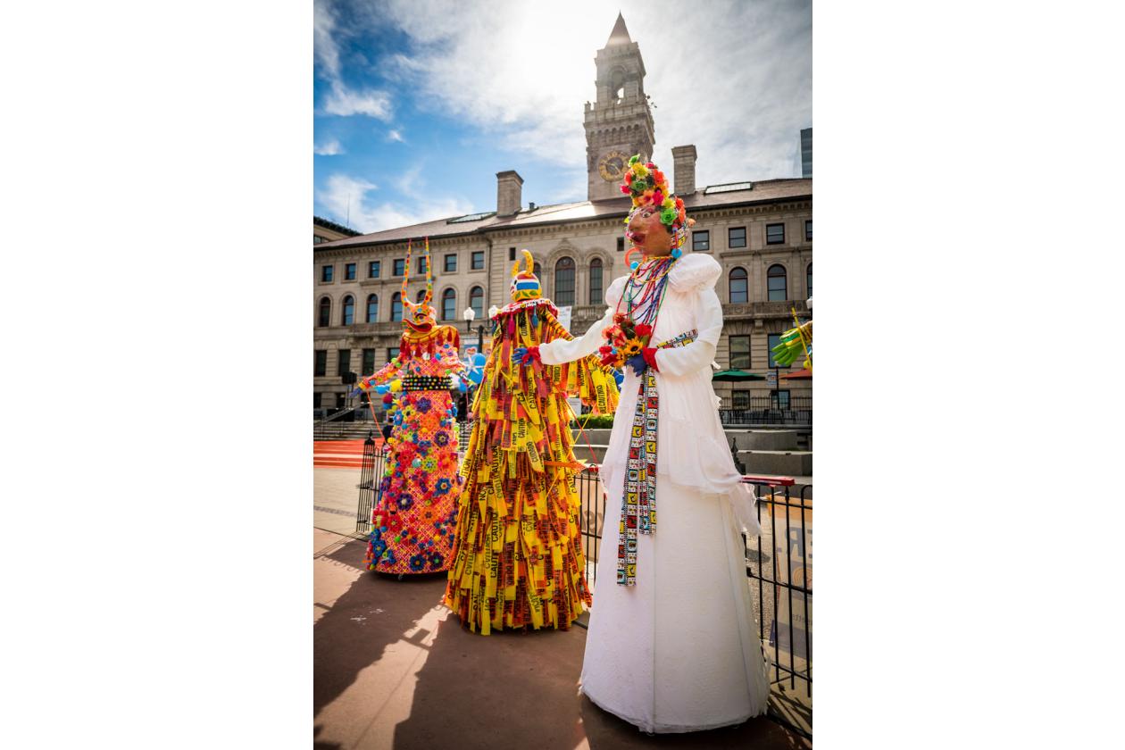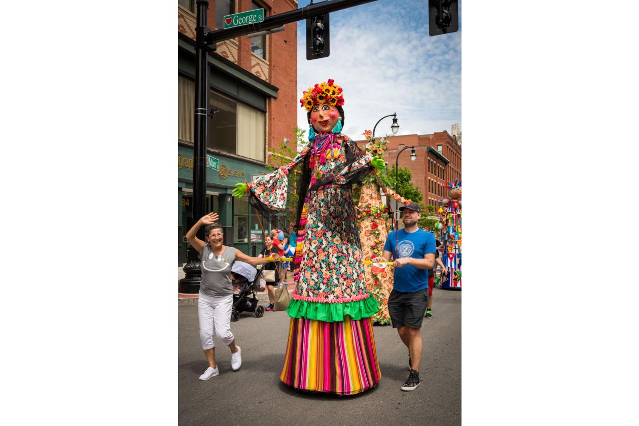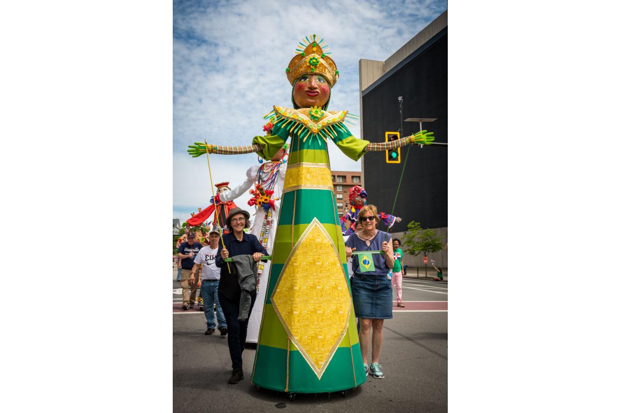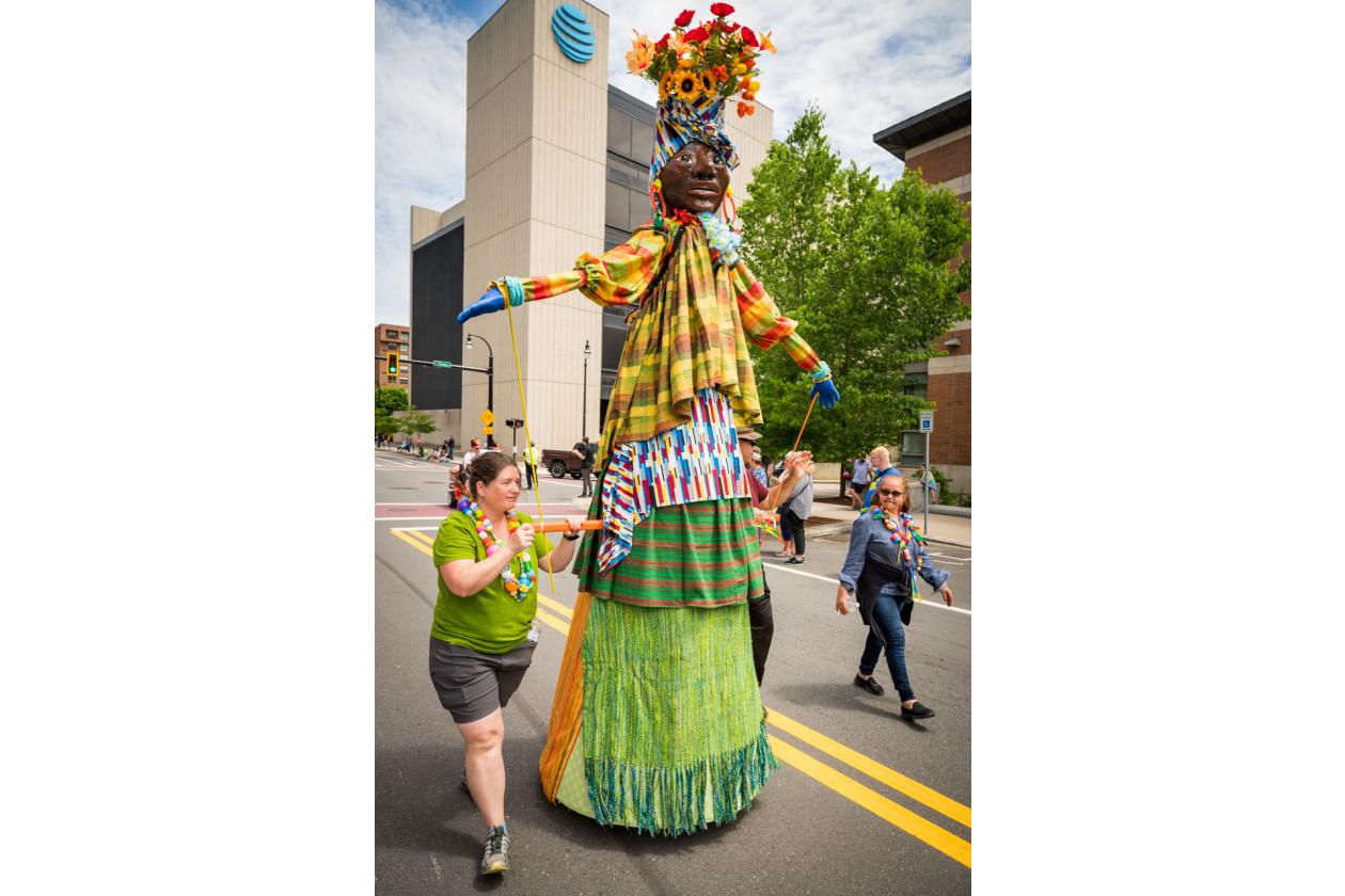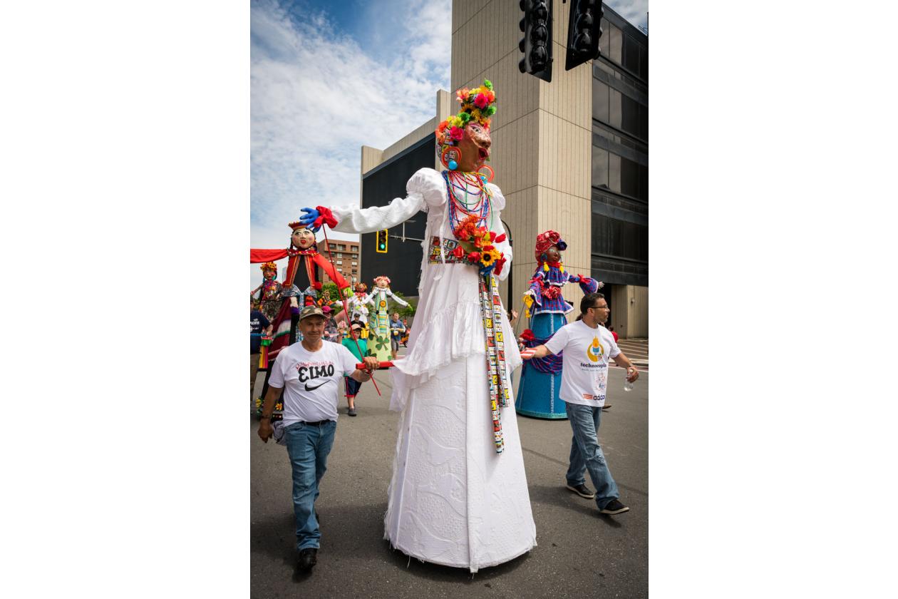 “We Are Worcester” is a community project that was created for the celebration of Worcester’s 300th birthday, to be part of the Worcester Tercentennial parade. For two months, several organizations, artists and community members collaborated to make one of the largest-scale sculptures the city of Worcester has ever had. In partnership with Guardians of Traditions and Creative Hub Worcester, and Dominican artist Luis Rivas, the community came together to design and execute eighteen large-scale, three-dimensional sculpture dolls that represent the diversity in Worcester.