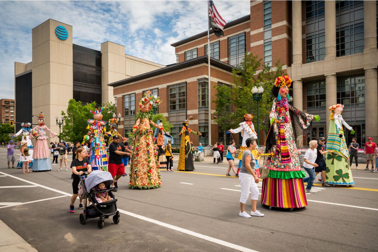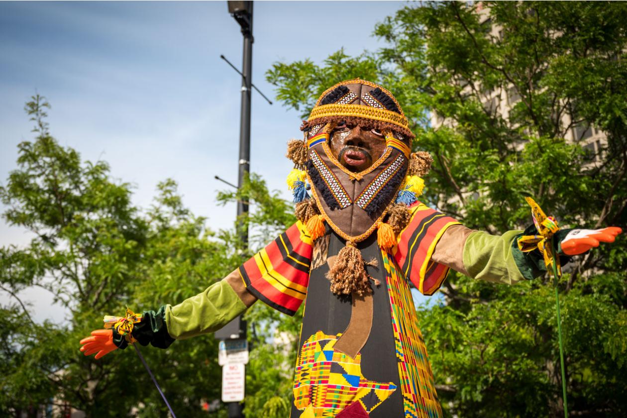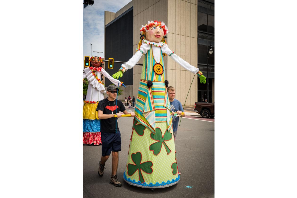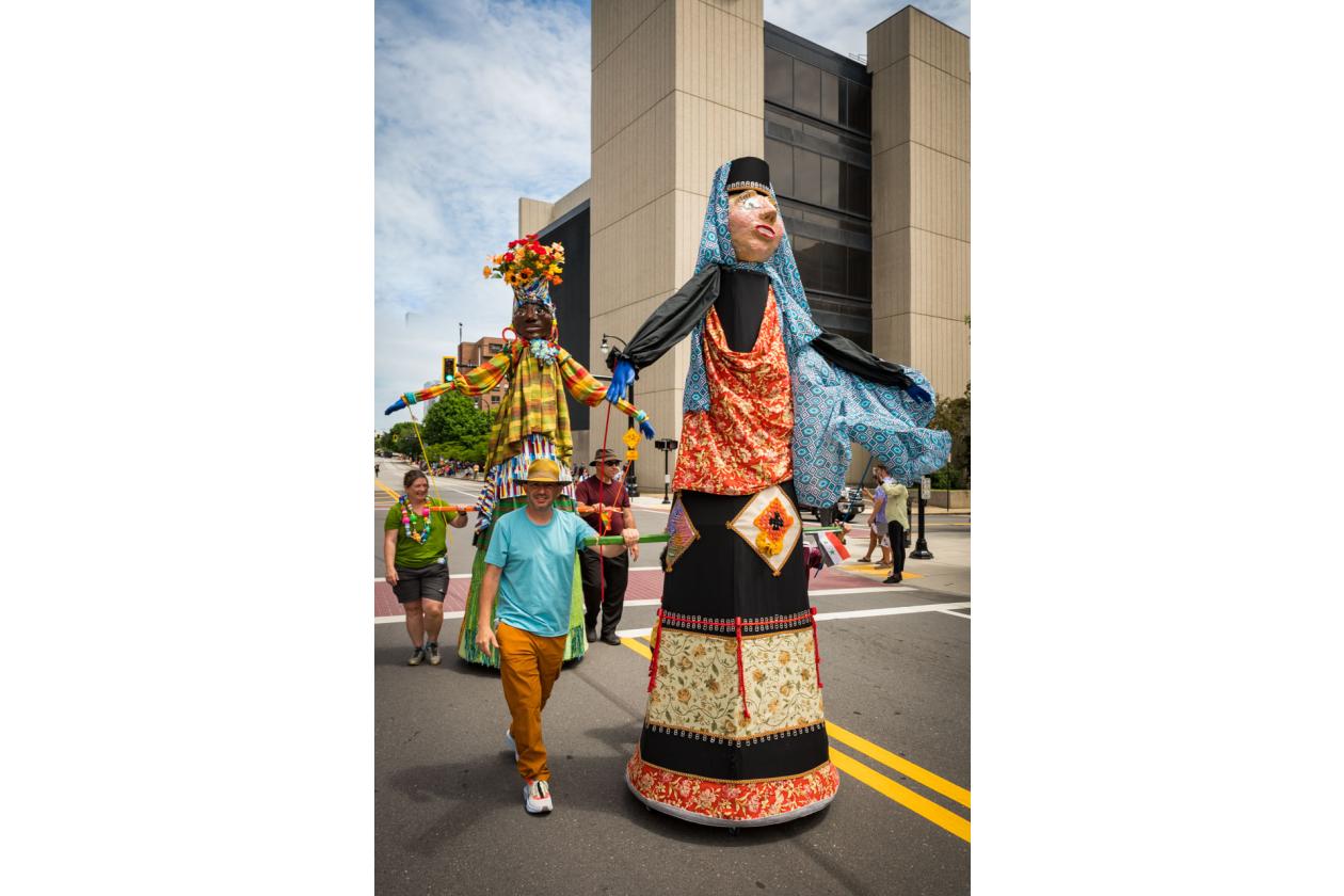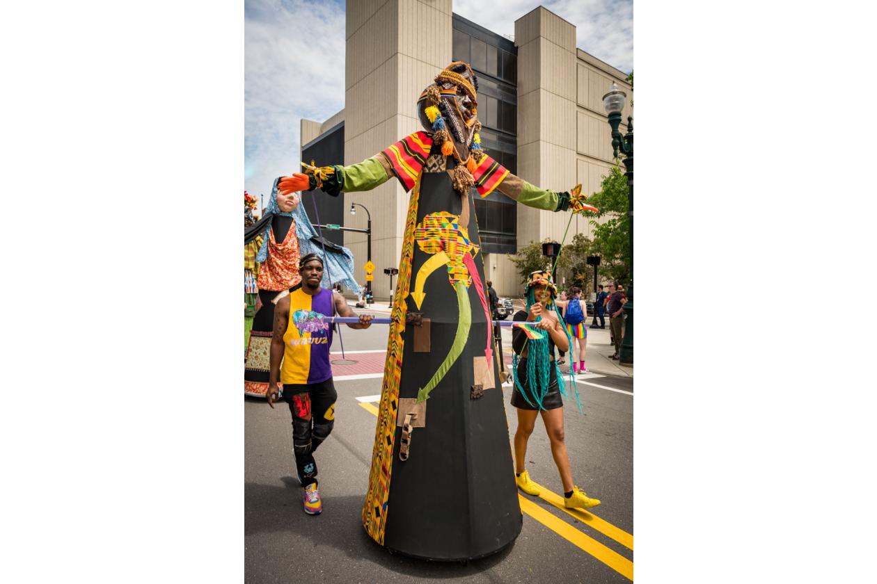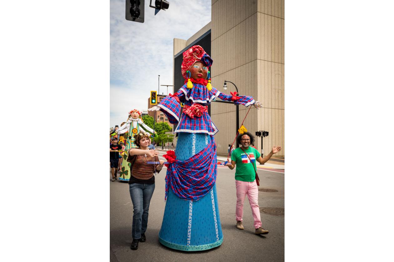 “We Are Worcester” is a community project that was created for the celebration of Worcester’s 300th birthday, to be part of the Worcester Tercentennial parade. For two months, several organizations, artists and community members collaborated to make one of the largest-scale sculptures the city of Worcester has ever had. In partnership with Guardians of Traditions and Creative Hub Worcester, and Dominican artist Luis Rivas, the community came together to design and execute eighteen large-scale, three-dimensional sculpture dolls that represent the diversity in Worcester.